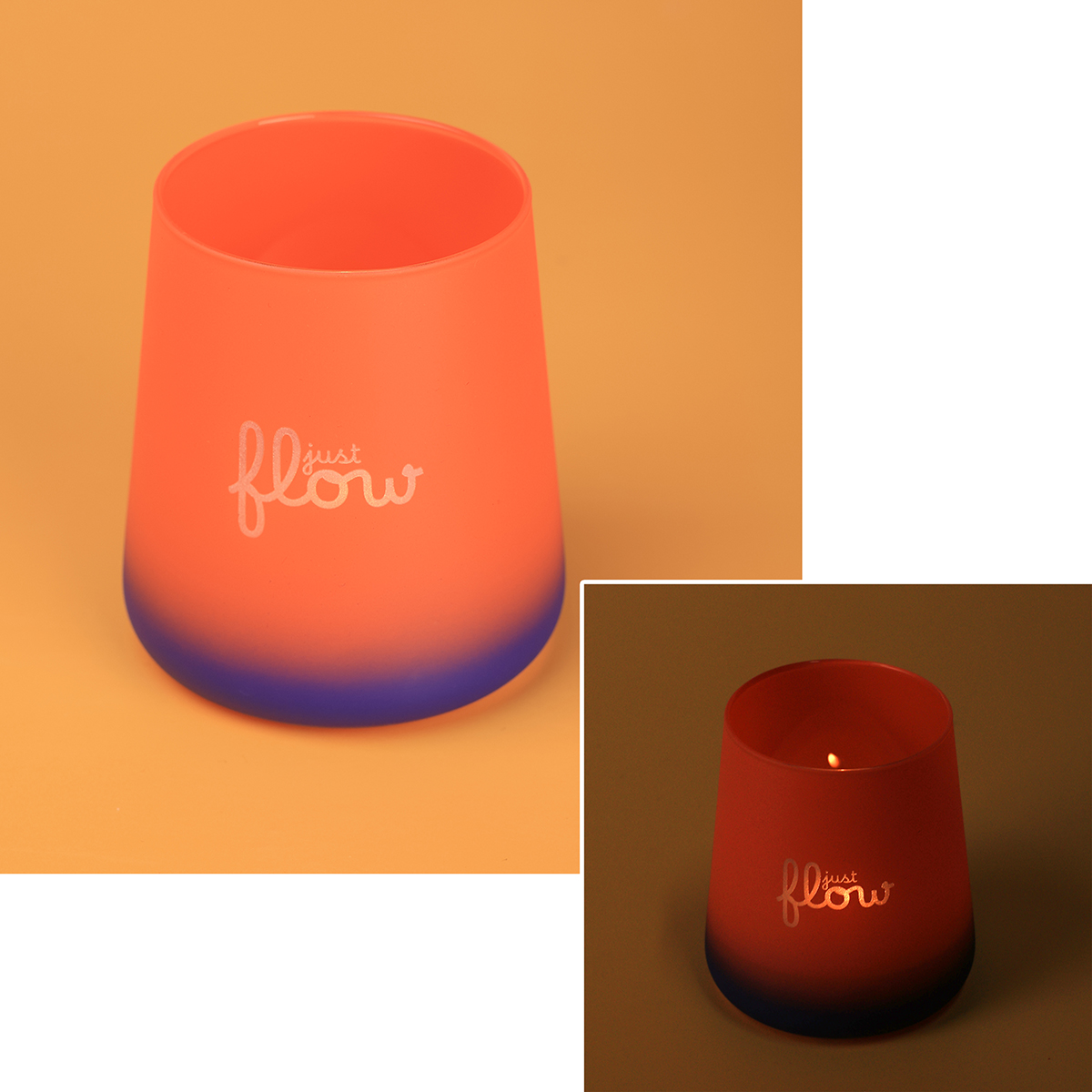 Cette lanterne en verre est teintée de deux couleurs entrelacées, créant un effet ombré moderne et raffiné. Son design est sublimé par une gravure délicate et précise qui, une fois allumée, lui confère un caractère unique et luxueux.