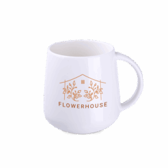Une tasse en porcelaine avec une forme intéressante et une anse avant-gardiste. Il soulignera de maniere originale le caractere unique de la marque promue.