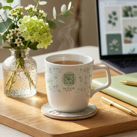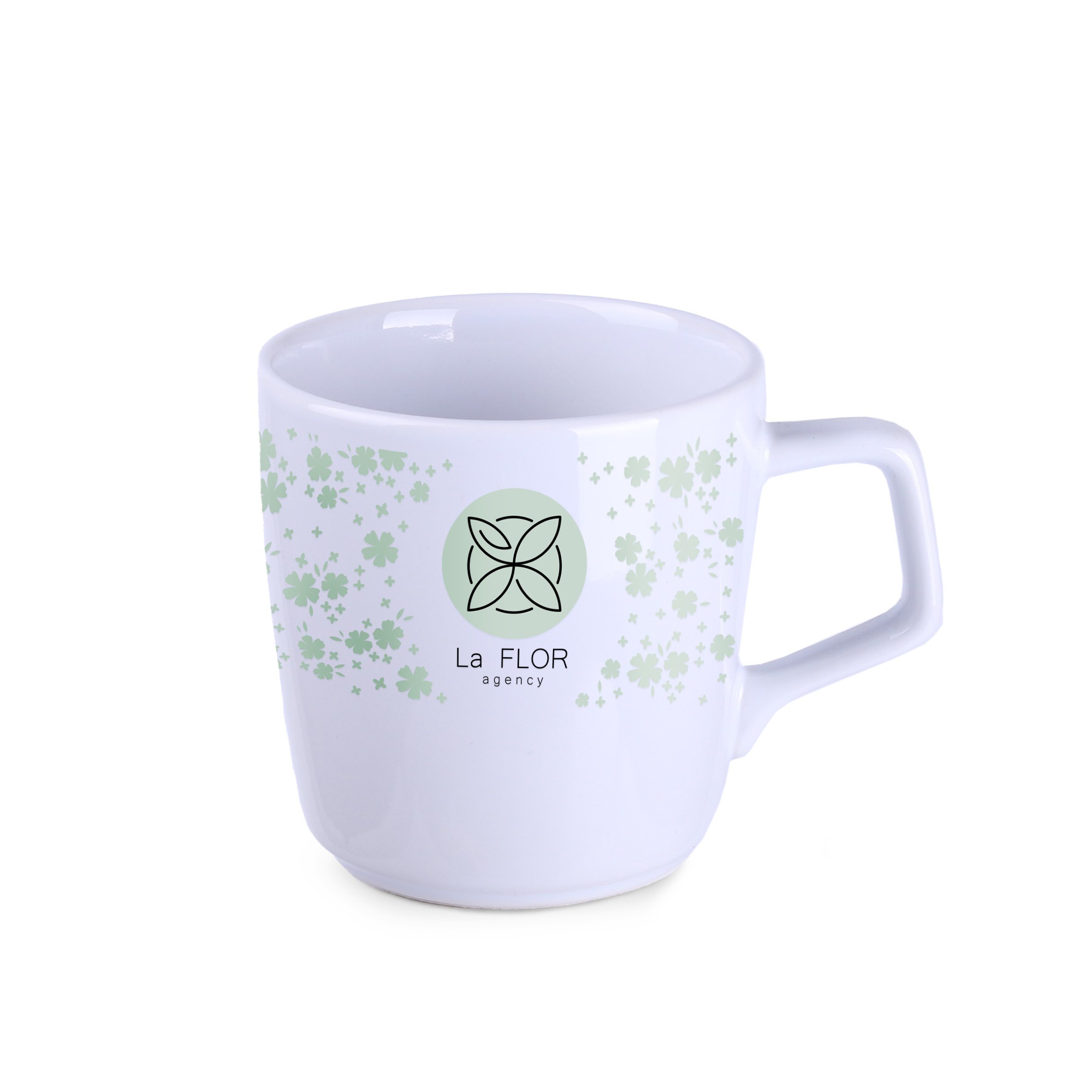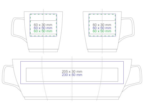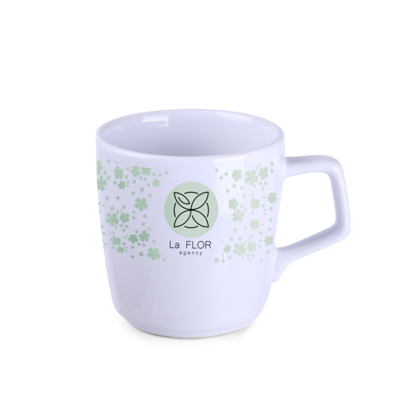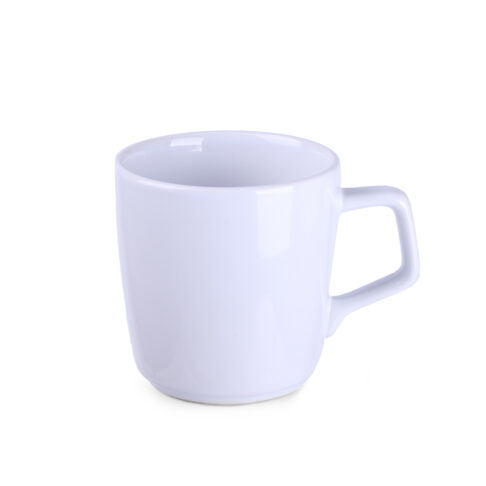 Mug en porcelaine de forme ovale. Il possede une poignée originale et accrocheuse et de nombreuses possibilités de coloration.
