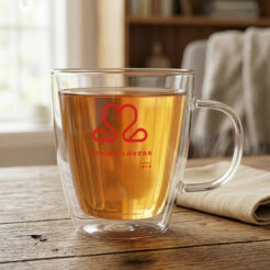 Un mug en verre de forme ovale avec une anse ergonomique. Fabriqué en verre épais, il possede une base stable.