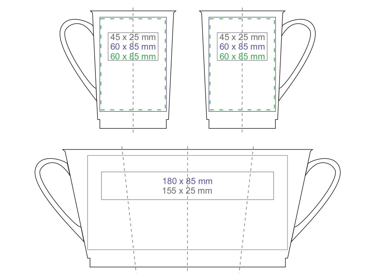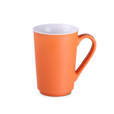 Un mug publicitaire fin avec un extérieur satiné coloré et un intérieur blanc brillant. Il possede une anse subtilement arrondie. Ses parois simples accepteront parfaitement meme de tres grands marquages.