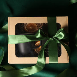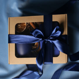 Des accessoires élégants pour décorer l'emballage : ruban ou papier d'emballage de couleur assortie.