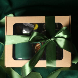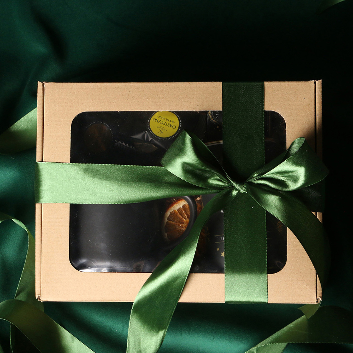 Accessoires élégants pour décorer l'emballage : ruban ou emballage de couleur assortie.
