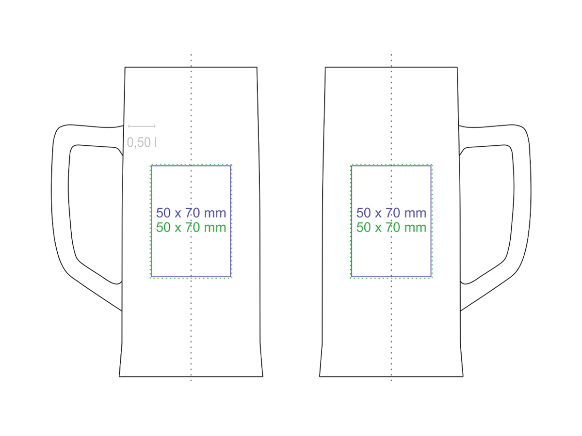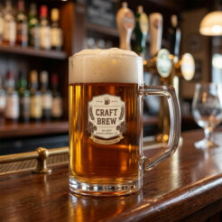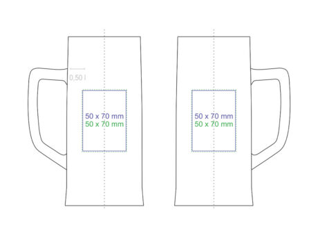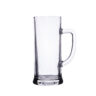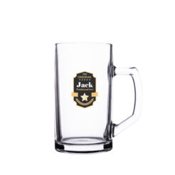 Une grande chope a biere aux parois droites en verre et épaisses. Il possede une anse confortable et de grandes possibilités de décoration. Produit en Europe.