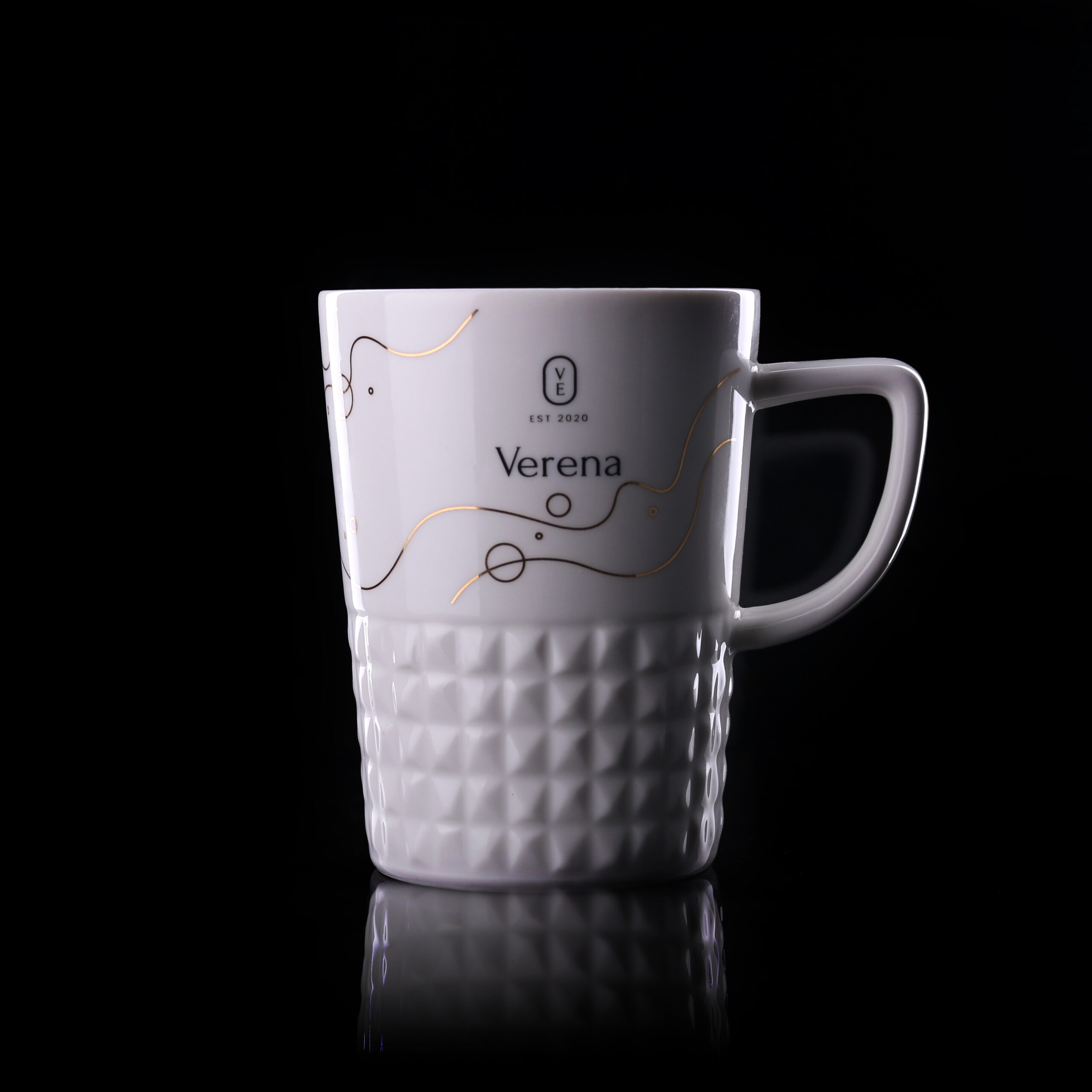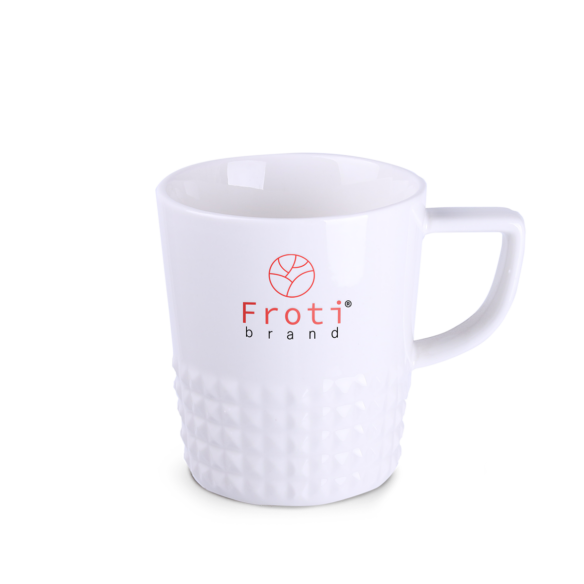 Mug design et élégant en porcelaine de haute qualité. Il possede une anse moderne et des saillies qui lui conferent un caractere unique. Parfait pour appliquer des designs originaux.