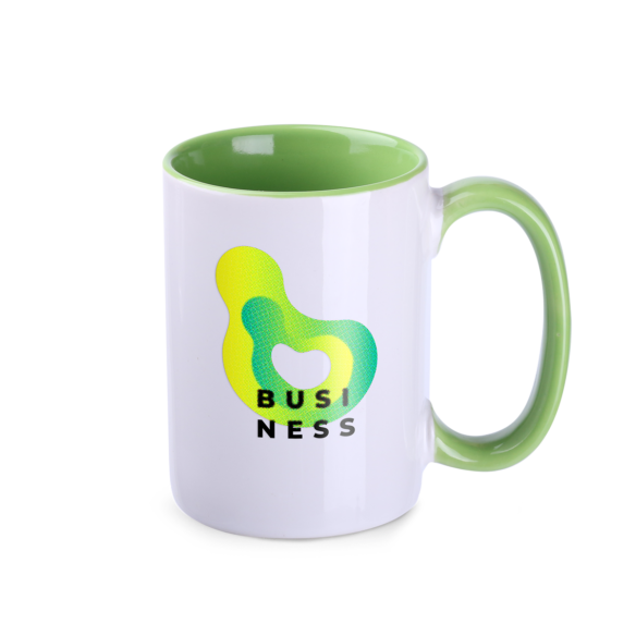 Un mug moderne et original aux parois droites. Sa poignée et son intérieur sont colorés en couleurs. Grâce a la grande surface d »impression, elle offre de larges possibilités de promotion de la marque.