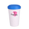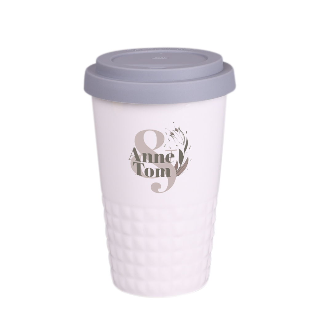 Mug nomade design en porcelaine. Il présente une finition caractéristique de la partie inférieure sous forme de saillies. Le modele est destiné aux personnes actives, amateurs de voyages. Grâce a la structure interne avec double paroi en porcelaine, elle se caractérise par un niveau accru d »isolation thermique. Il dispose d »un couvercle disponible en coloris.
