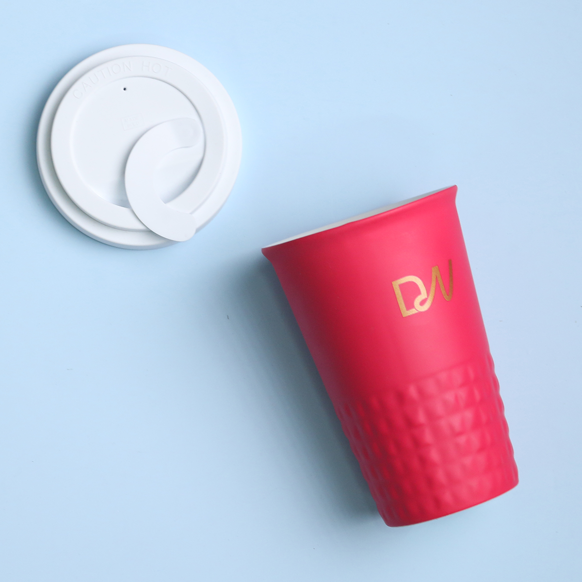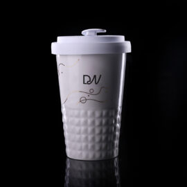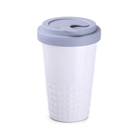 Mug nomade design en porcelaine. Il présente une finition caractéristique de la partie inférieure sous forme de saillies. Le modele est destiné aux personnes actives, amateurs de voyages . Grâce a la structure interne rare avec double paroi en porcelaine, elle se caractérise par un niveau accru d »isolation thermique. Il possede un couvercle hermétique, disponible en couleurs.