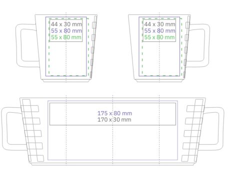 Tasse élégante en porcelaine de haute qualité. Elle a des incrustations originales des deux côtés de la poignée, ce qui lui donne un look très design. Elle possède une poignée ergonomique.