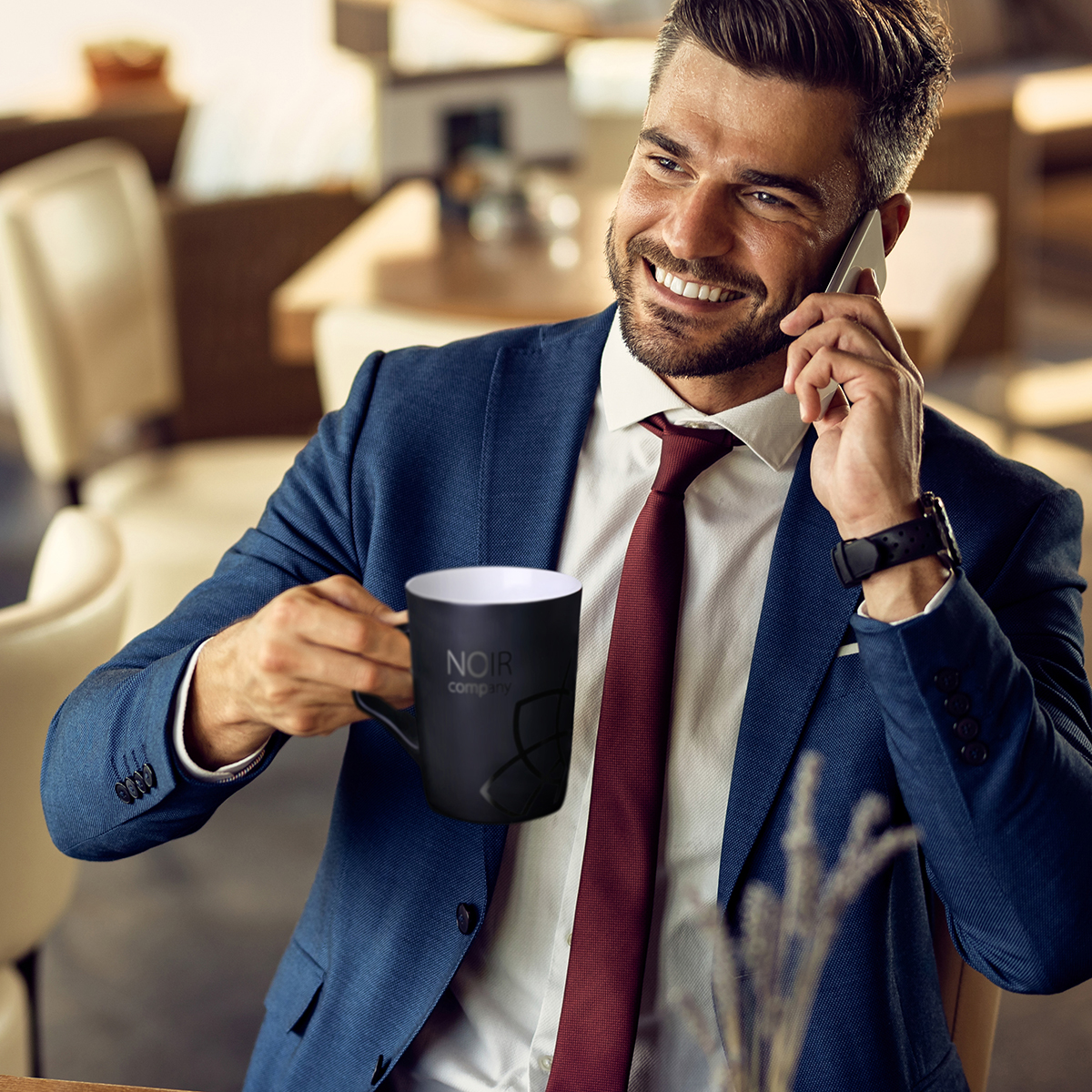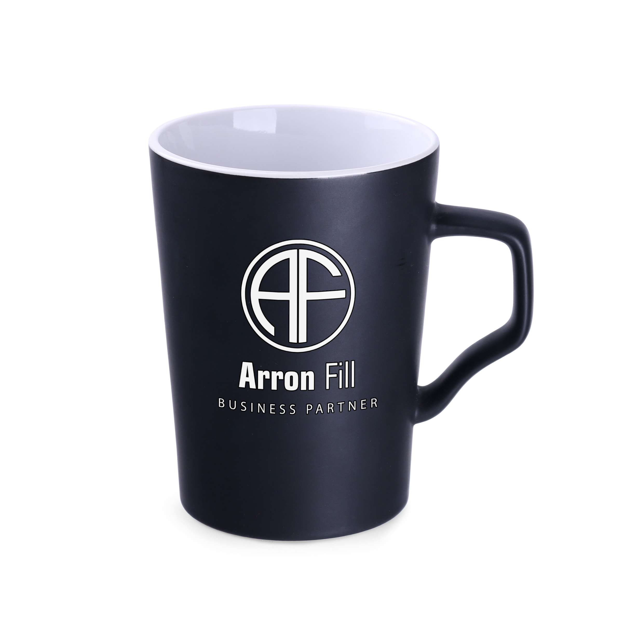 Une tasse élégante avec une touche luxueuse de surface noire mate supreme a l »extérieur. Le produit est disponible en deux couleurs intérieures : blanc et noir. Des parois simples et dignes mettront parfaitement en valeur les valeurs de l »entreprise.