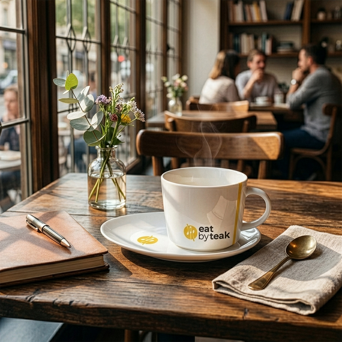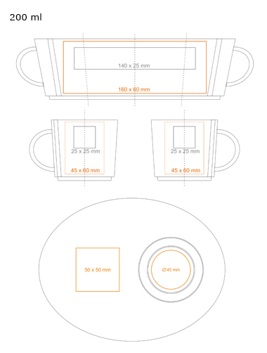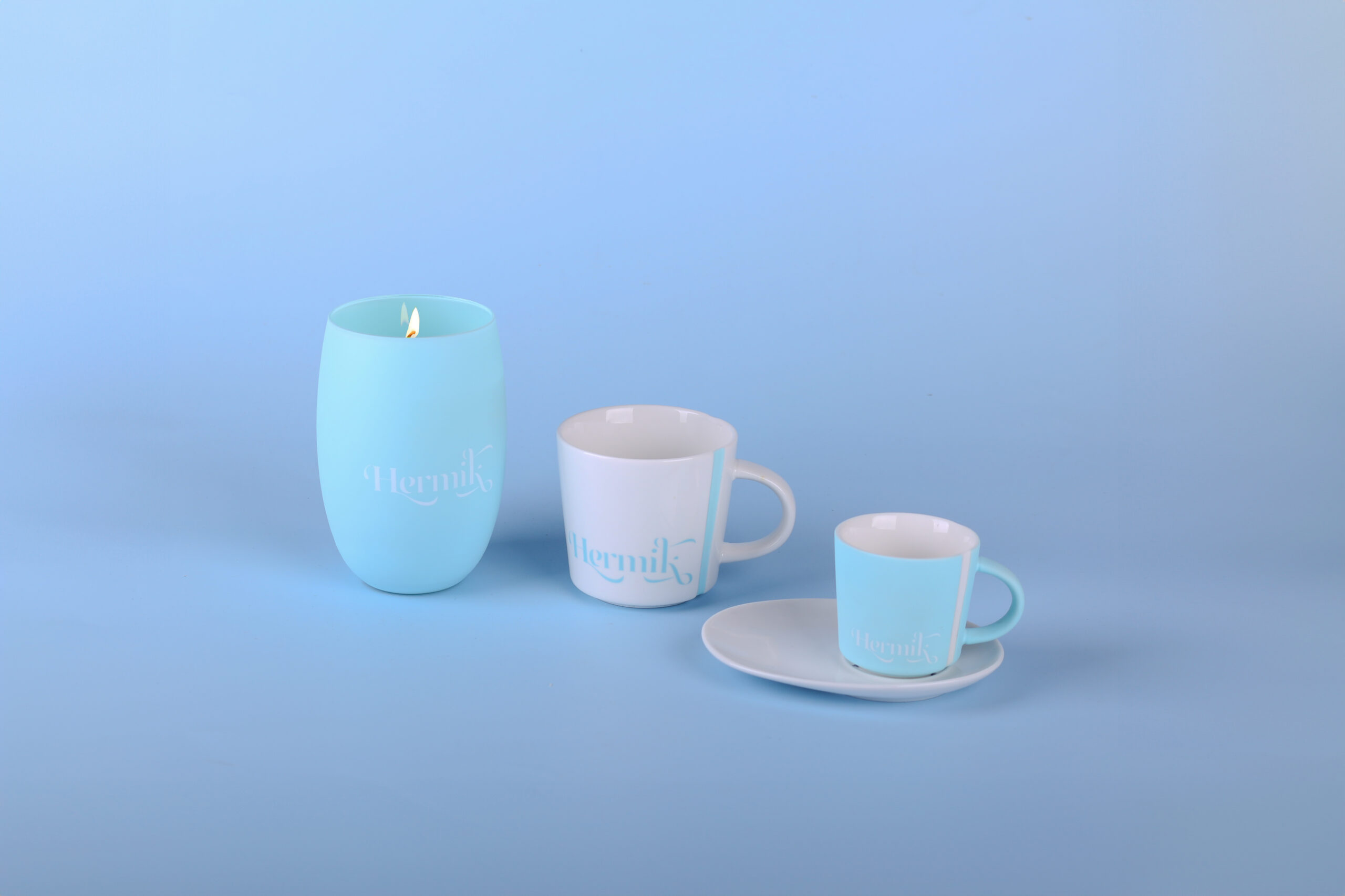 Tasse originale en porcelaine. Il se distingue par des rainures décoratives des deux côtés de l »anse. Elle mettra parfaitement en valeur le message unique de la marque.