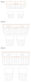 Modele original en porcelaine sans anse. La structure ondulée du fond du mug permet une prise en main tres facile. Disponible en trois versions de capacité. Un design offrant de grandes possibilités de marquage et d »empilage.
