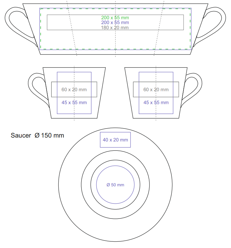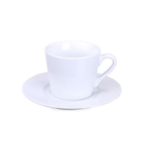 Une tasse subtile en porcelaine de haute qualité. Ses parois droites accepteront parfaitement tous types de décoration. Elle possede une soucoupe simple qui convient aux impressions multicolores.
