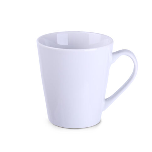 Mug classique de forme trapézoidale. Fabriqué en porcelaine d »origine européenne. Il possede une anse confortable et ergonomique. S »adapte parfaitement aux machines a café.