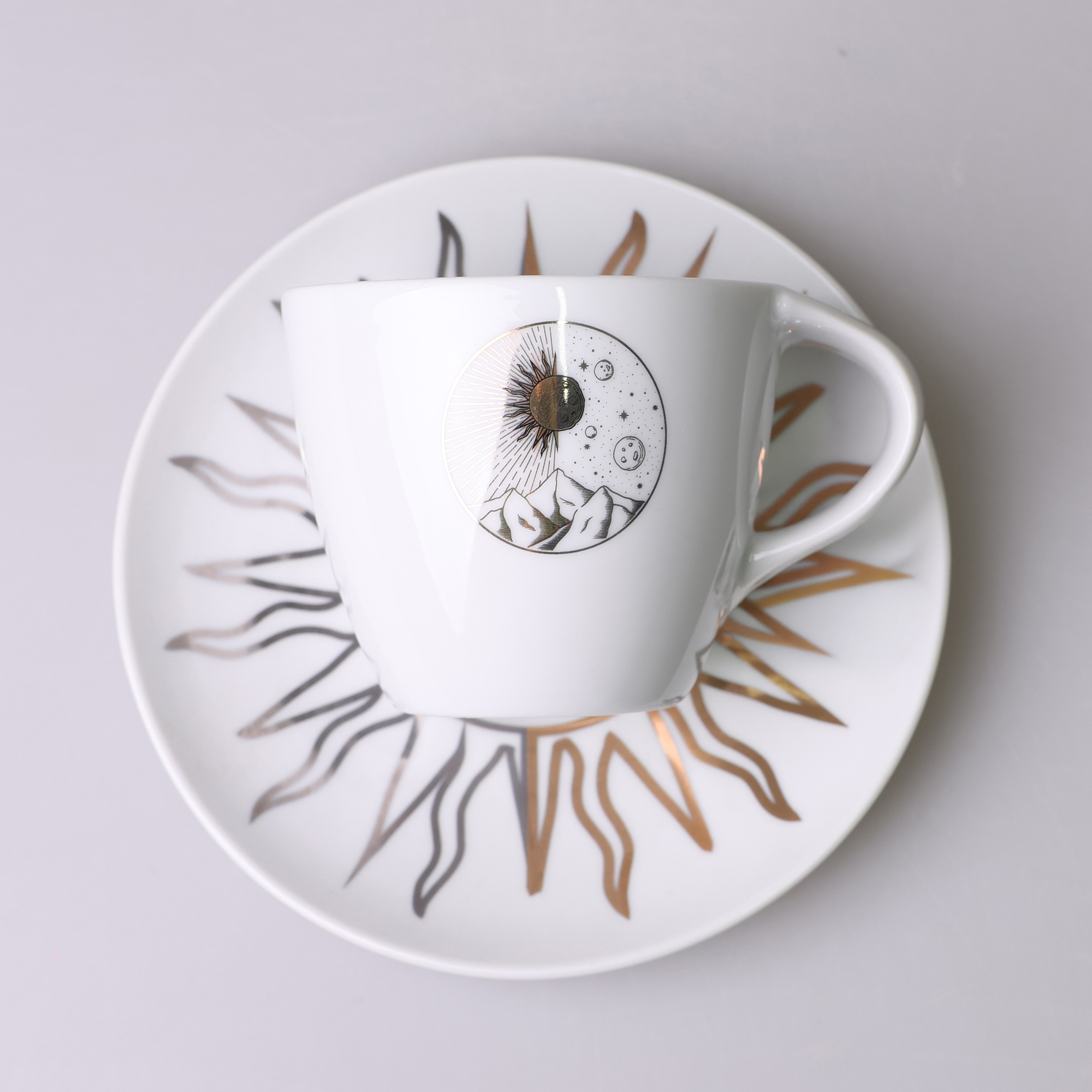 Une tasse en porcelaine subtile avec une anse attrayante et de nombreuses possibilités décoratives.