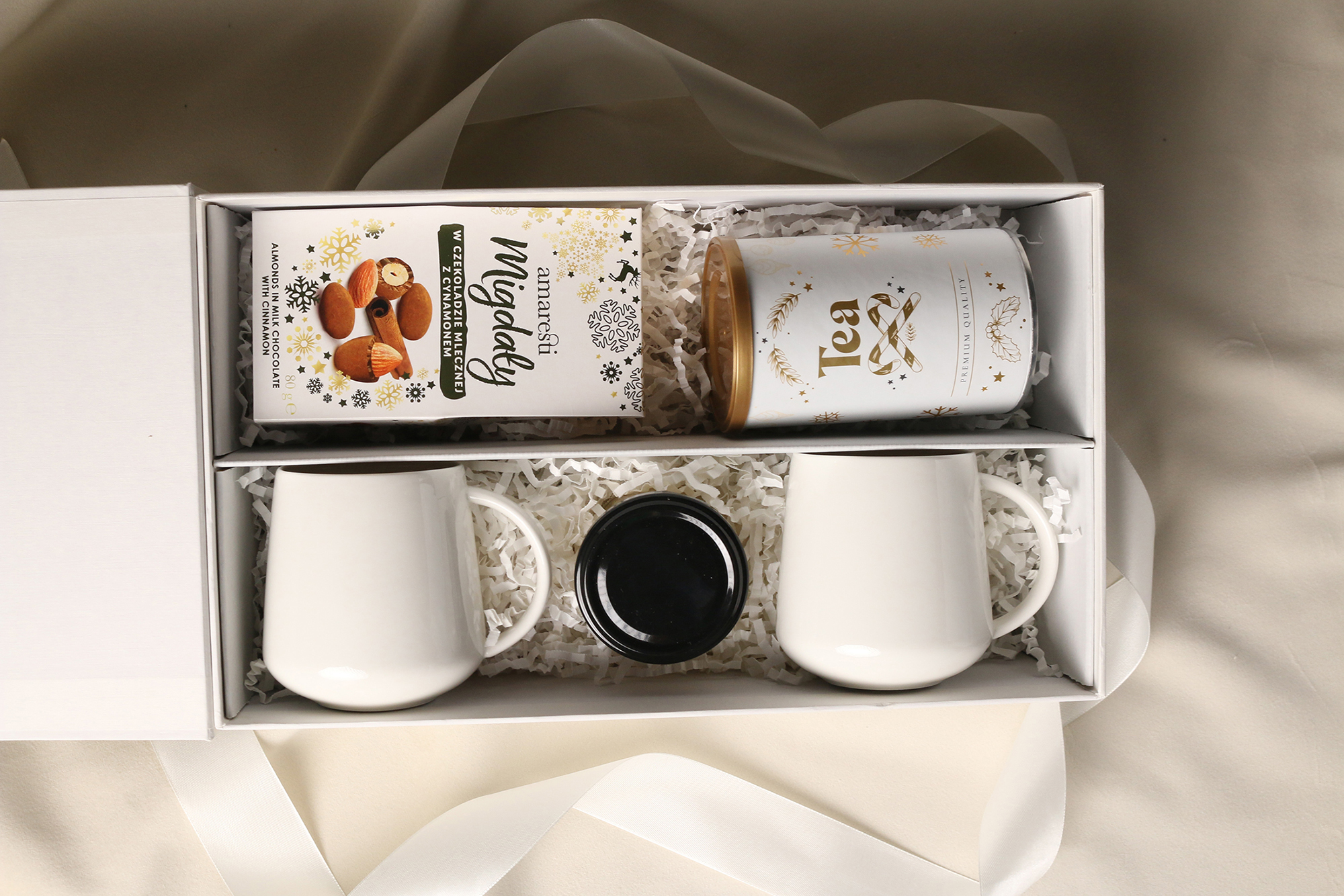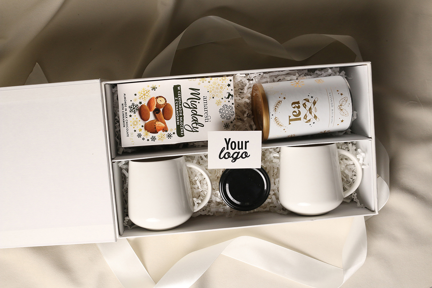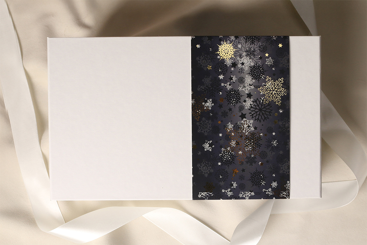 Emballage exclusif à fermeture magnétique avec la possibilité d'ajouter un ruban et une enveloppe.